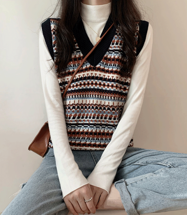 [3color] 븍유럽 니트 조끼 / 슬림 목폴라 티셔츠