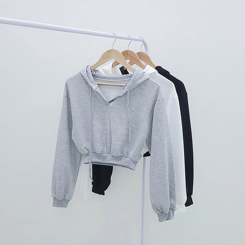 [당일출고🚀/잘록허리/유니크/힙한] 샌디 브이넥 트임 무지 크롭 후드티