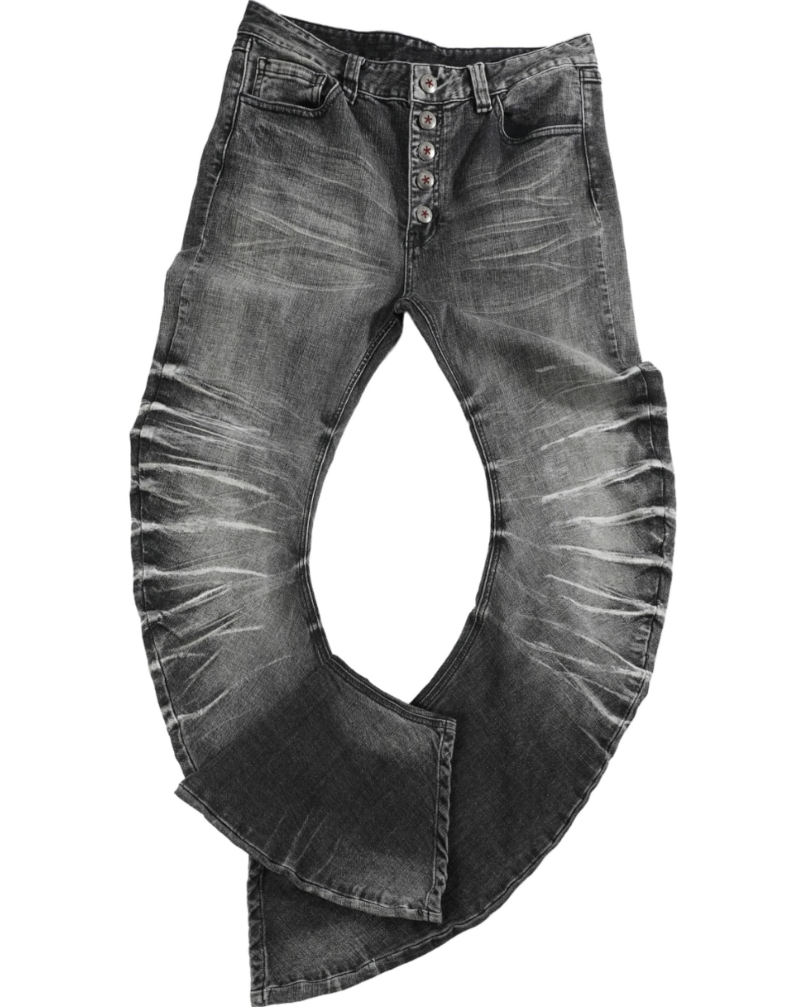 NO E MOSEN 아이스 블루 크랙 워시드 캣워싱 롱 데님팬츠