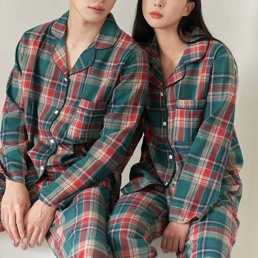 안파 커플 잠옷 파자마 홈웨어 선물 집들이 수면 신혼부부 체크 면 웨스턴 긴팔 세트 ANPA06