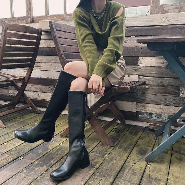 라운드 스퀘어 롱부츠(굽4.5cm)