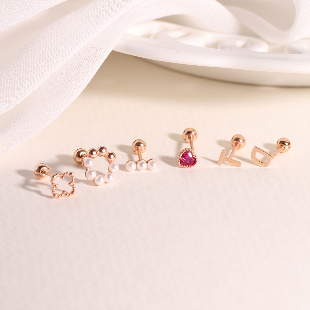 [전체14k] 크림치즈 진주링 도트클로버 이니셜 골드 피어싱 귀걸이
