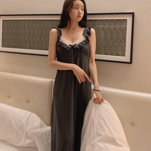 블랙 섹시 밑트임 맥시 롱 드레스 홈웨어