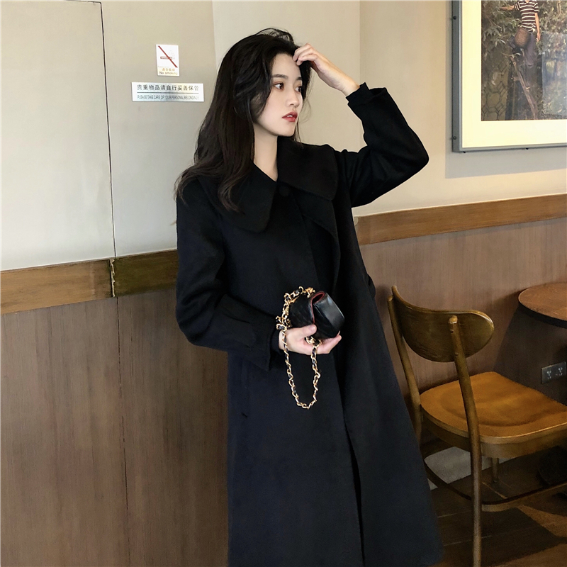 프렌치 긴팔 카라 모직 롱 코트 봄 가을 20대 30대 출근룩 데일리룩 허리 스트링 여성스러운 아우터 자켓