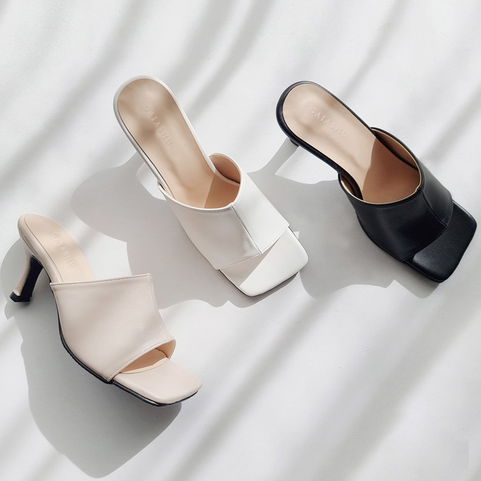 국내제작 스퀘어 토 오픈 뮬 슬리퍼 힐 7cm