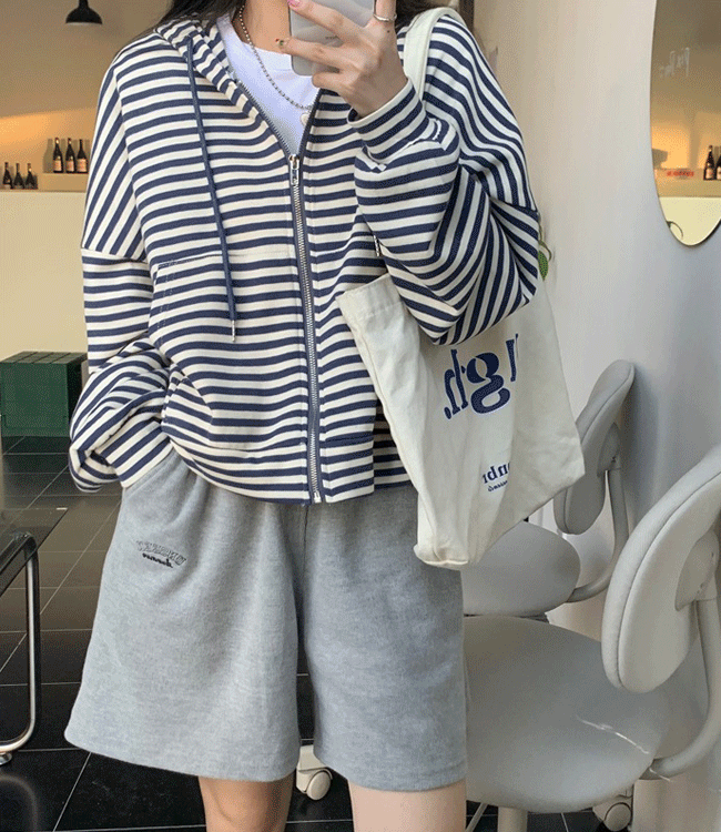 [블루/블랙] 줄무늬 후드 집업