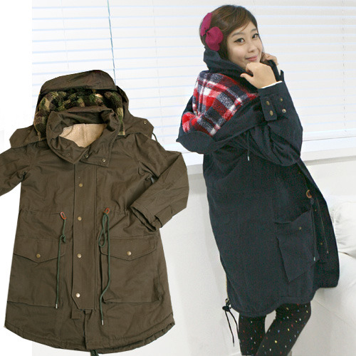 빨간체크 뽀글이 덤블 양털내장 야상점퍼