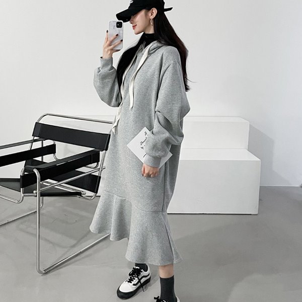 후드 후레아원피스)기모면원단/겨울롱후드원피스/모자원피스/밑단플레어/플레어원피스/루즈핏/박시한/오버핏/빅사이즈/임산부복