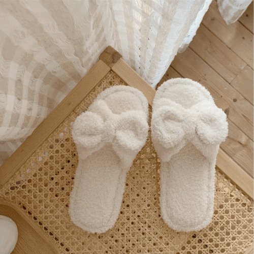 [층간소음 방지 실내화] 리본 뽀글이 홈 슬리퍼 (3color)