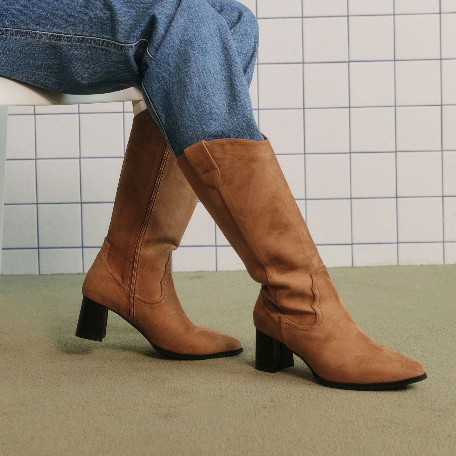 [스웨이드ver.추가] 포인티드 토 웨스턴 롱부츠 412148003 (6cm/3color)