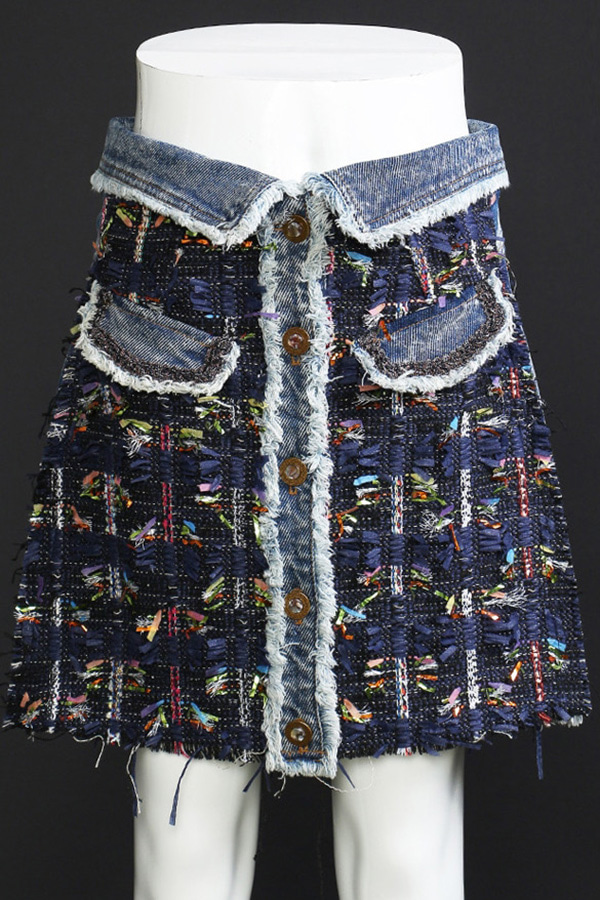 21OCT1211 명품스타일 트위드 데님 미니스커트