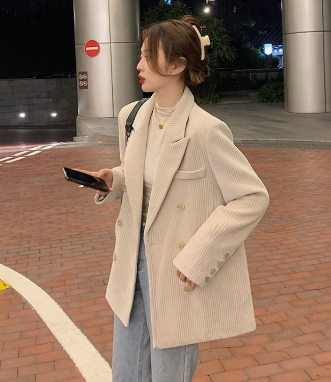 [블랙/아이보리] 코듀로이 블레이저 자켓