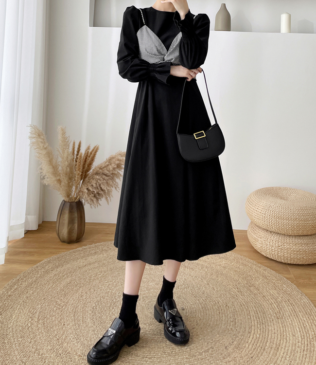 브라이덜샤워 파티 체크 뷔스티에 롱 하객원피스
