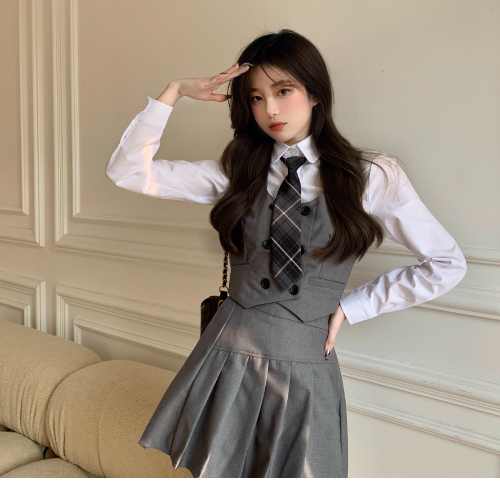 [-2XL]릴리 조끼 베스트 플리츠치마 스쿨룩세트 교복스타일 (기념일 교복코스프레 코스튬 이벤트 놀이동산 클럽룩 파티 할로윈 단체복)