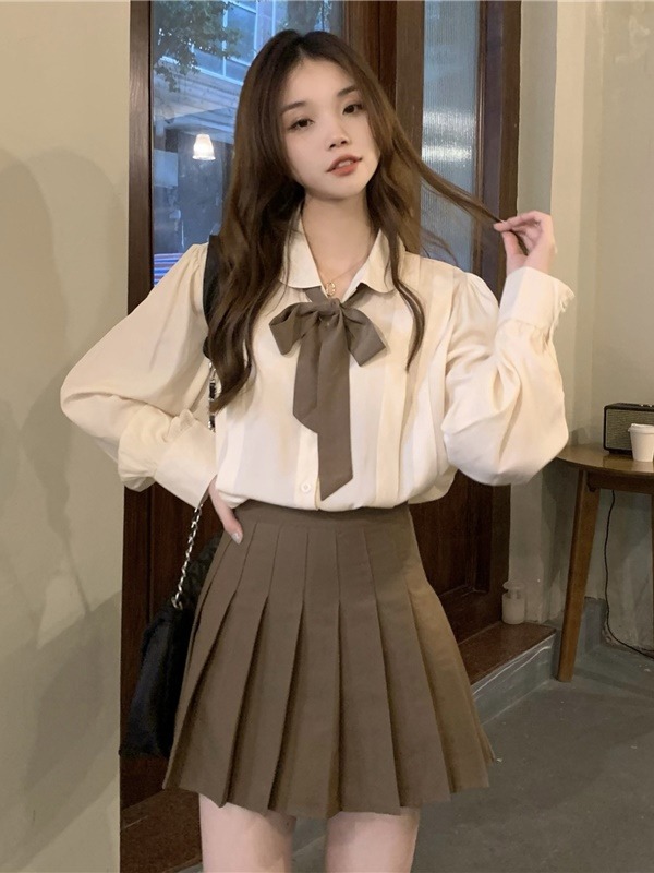 모나 교복룩 스쿨룩 리본타이 블라우스 스커트 세트
