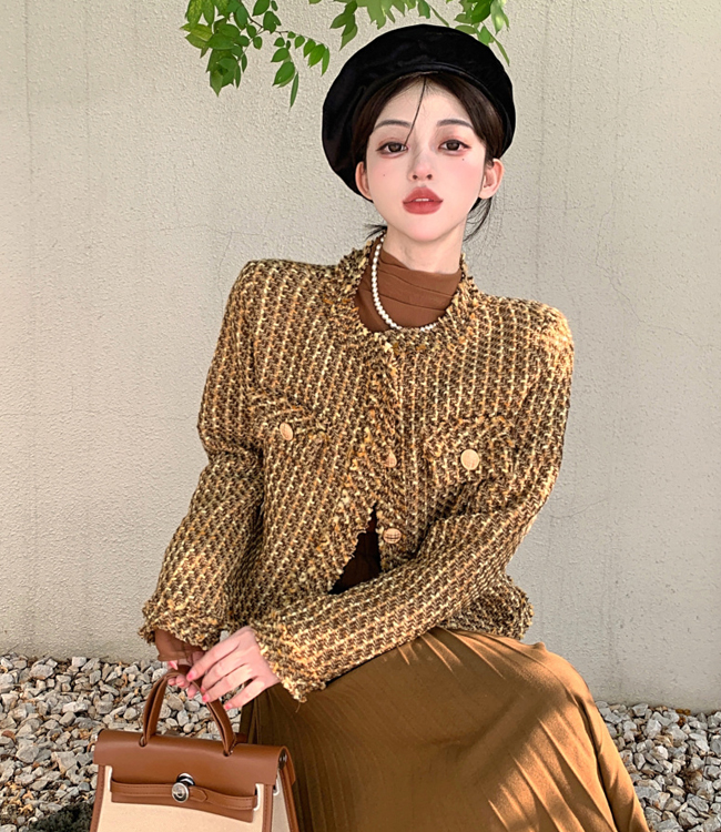 [블루/브라운] 빈티지 트위드 자켓 / 목폴라 / 아코디언 롱 스커트