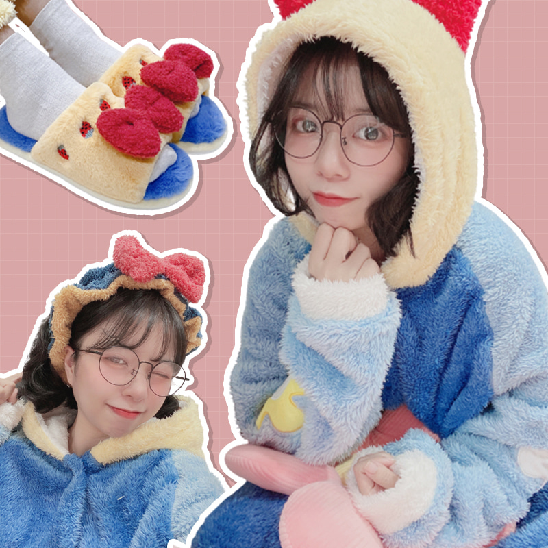 [달링걸]백설공주 홈웨어 겨울 가운 잠옷 세트 슬리퍼 실내화 헤어밴드