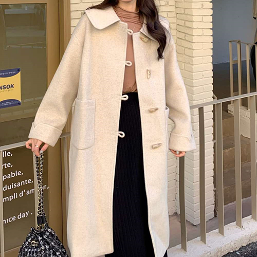 오트밀 라이트 베이지 카라 심플 여성 데일리 롱 코트 J14