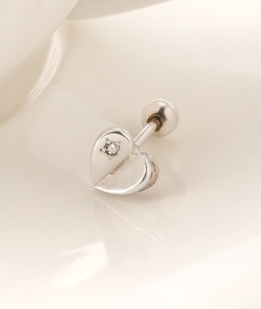 925 실버 피어싱 큐빅 입체 하트 볼피어싱