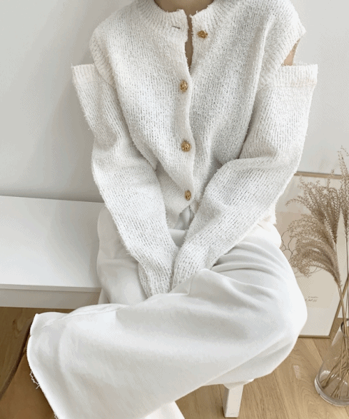 클라우드 어깨 버튼 소매 탈부착 조끼 투웨이 가디건