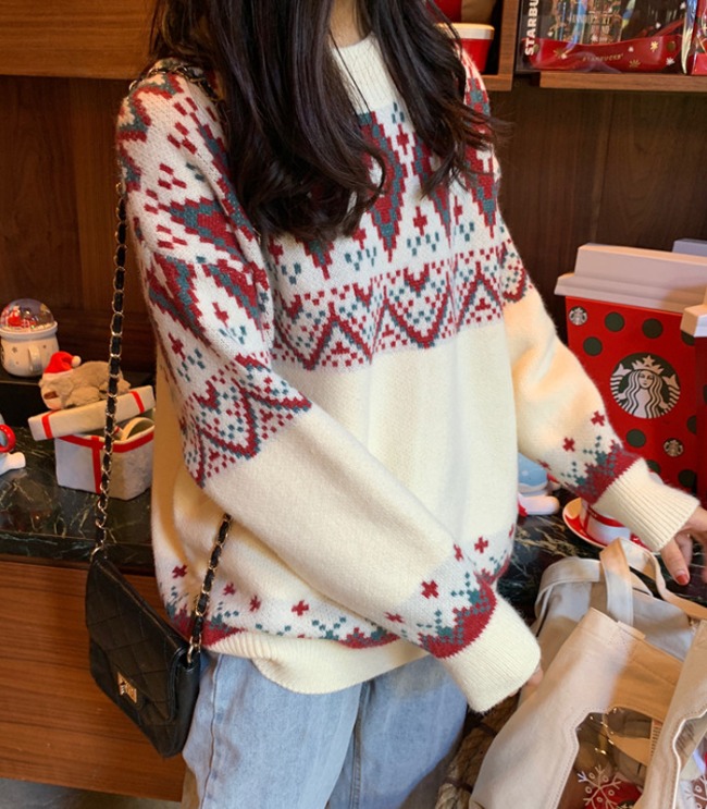 [당일배송] 아이보리/레드 성탄절 북유럽 패턴 니트 크리스마스/데이트룩