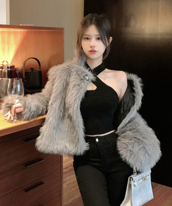 무료배송 [코디세트 퍼자켓+이너탑] 시크릿 레이어드 퍼자켓코디 (안감퀼팅) (그레이,화이트) [금요기획 #퍼 #양털 #부클]