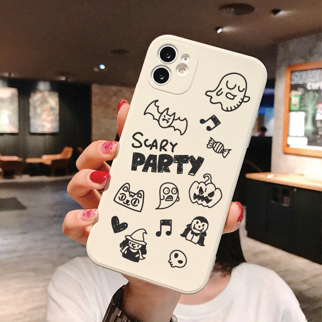 [비블리MADE] 고스트파티 아이폰 사각 스퀘어 컬러케이스 커플템 인싸템 우정템 귀여운 폰케이스 핸드폰 휴대폰 아이폰13 12 11 프로 미니 XR XS MAX SE2 7 8 플러스