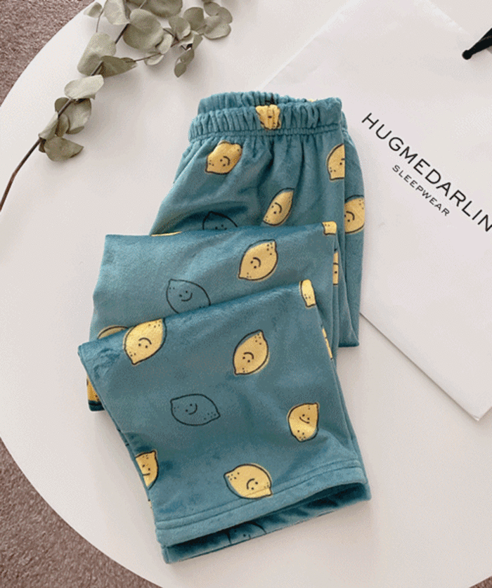 [커플] 키치레몬 극세사 수면바지