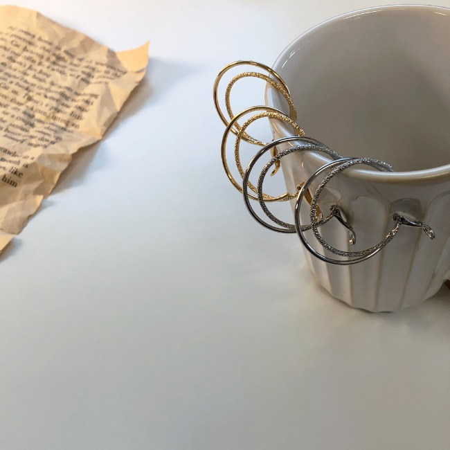 레이어드링귀걸이 두줄 링귀찌 후프이어링 은침 원터치 귀찌