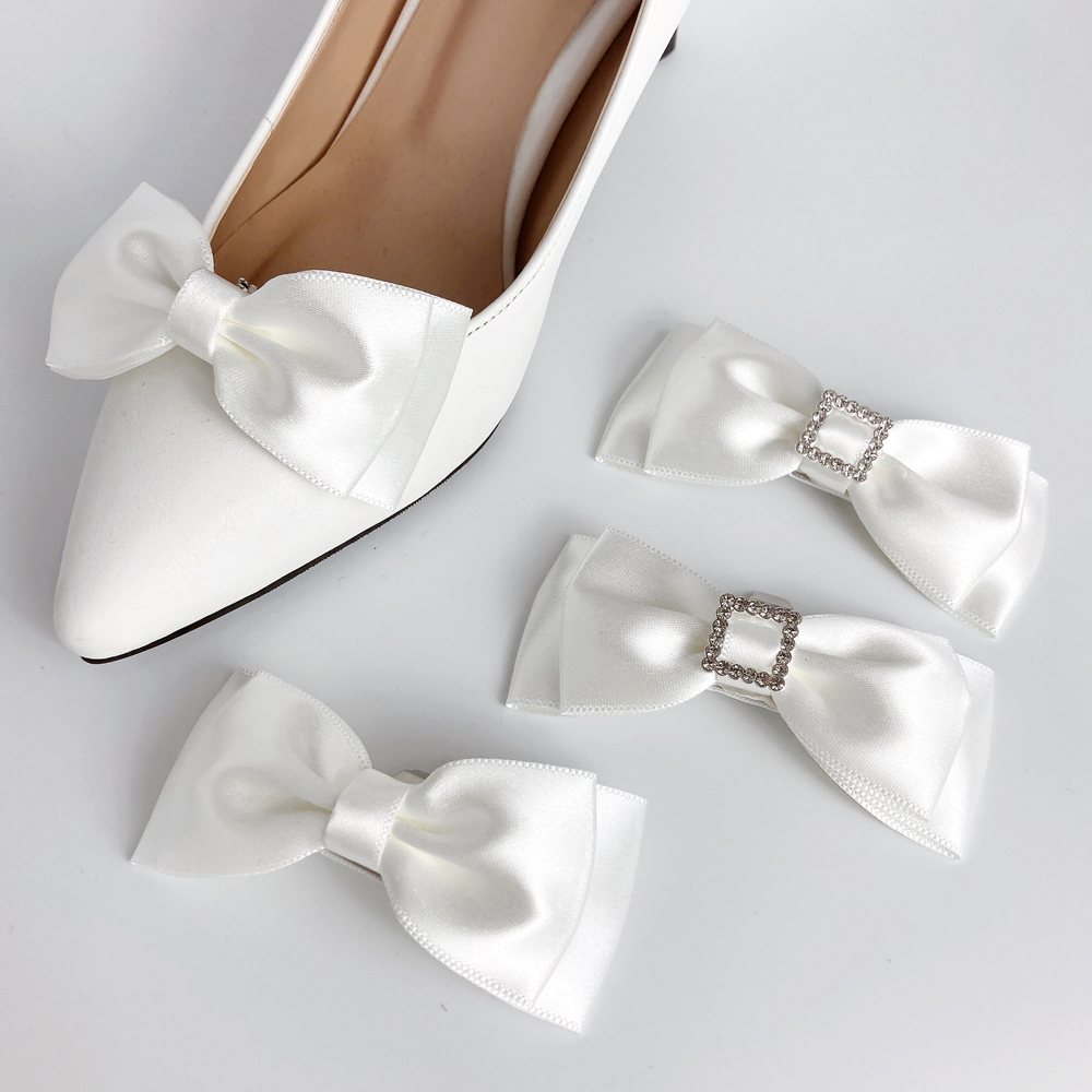 [자체제작] 웨딩슈즈 코사지 실크 리본 큐빅 슈즈 클립 웨딩촬영 구두장식 소품