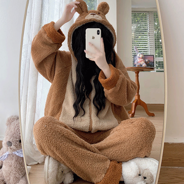 곰돌이 점프슈트 파자마 극세사 수면 잠옷 점프수트