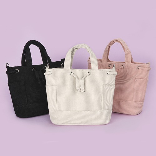 K462 코듀로이 골덴 버킷백 복조리백, 스트랩 토트백 천가방,심플 베이지 캐주얼 가벼운 간편 데일리 대학생 학생 직장인 가을 겨울 가방 수납 숄더백 크로스백