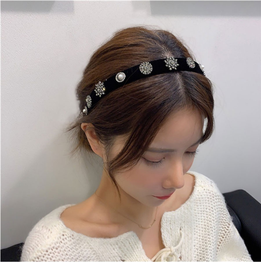 [무료배송] 벨벳머리띠 벨벳 명품 큐빅 진주 헤어밴드
