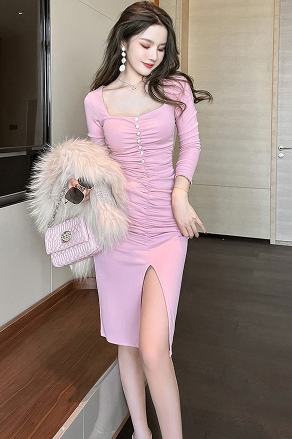 21DEC302 명품스타일 베리 큐빅볼 셔링 원피스