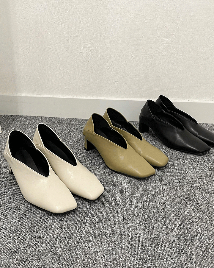 투웨이 언발 스퀘어 뮬 펌프스 힐 (3color)