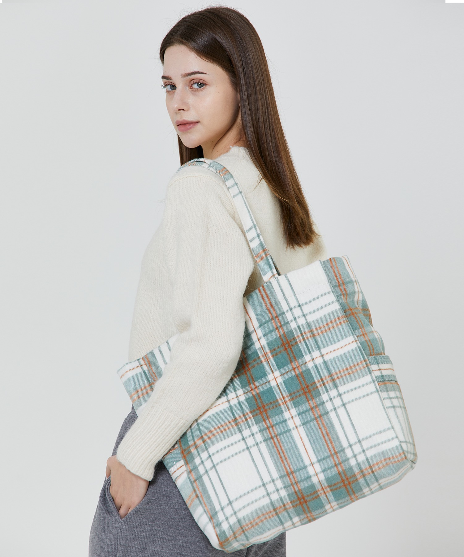 체크 코튼 포켓 에코 숄더백 (민트/체크)