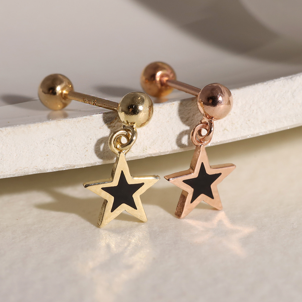 [무배/전체14k] 블랙핑크별 드롭 골드 피어싱 귀걸이