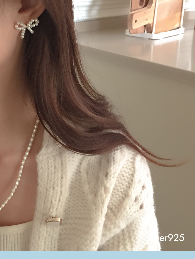 ribbon pearl earring (silver925)