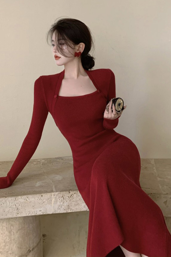 21DEC1012 여성의류쇼핑몰 럭셔리 스퀘어넥 롱 원피스