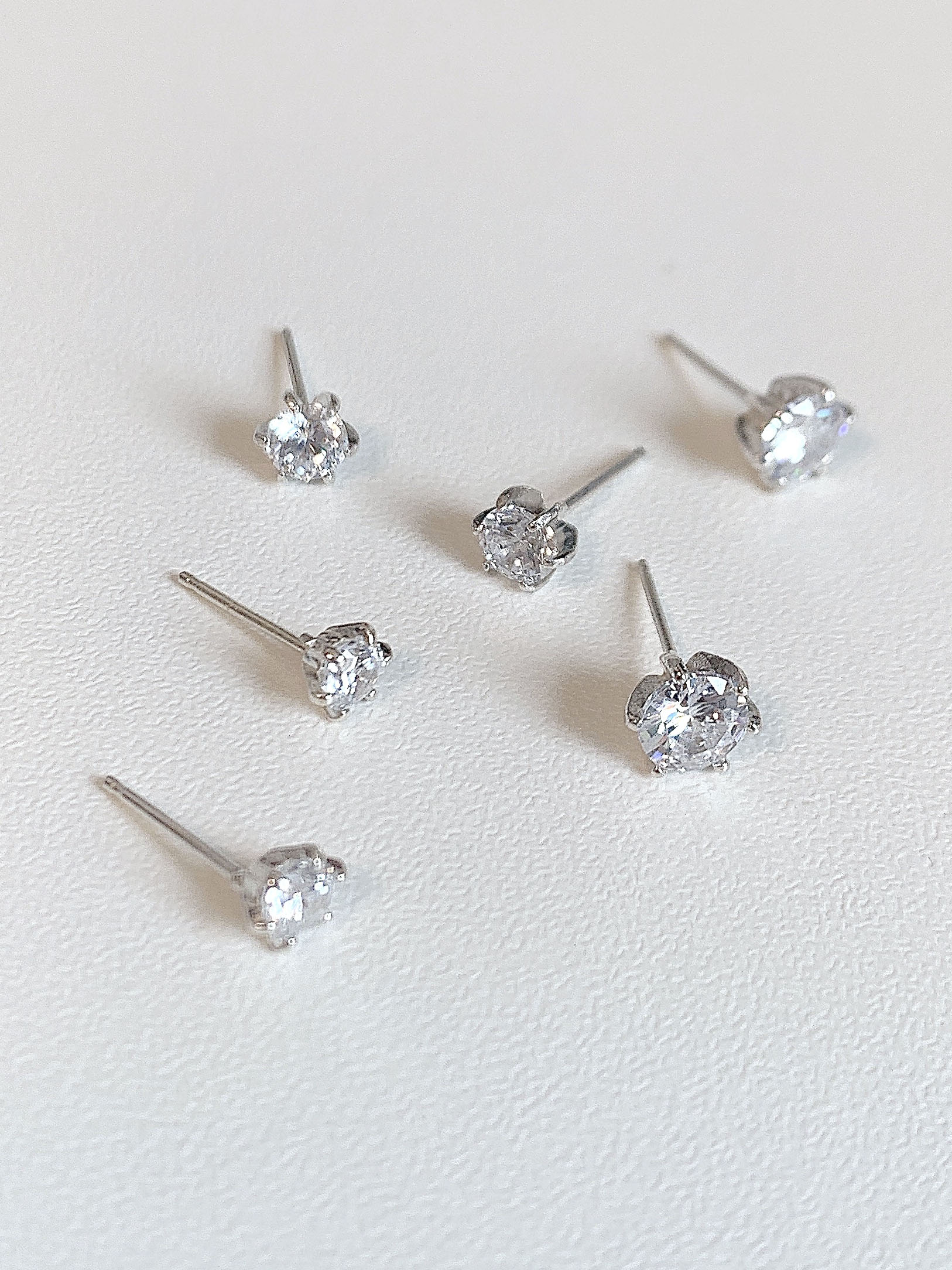 silver 92.5 베이직 심플 포인트 큐빅 은귀걸이 5mm/6mm/7mm