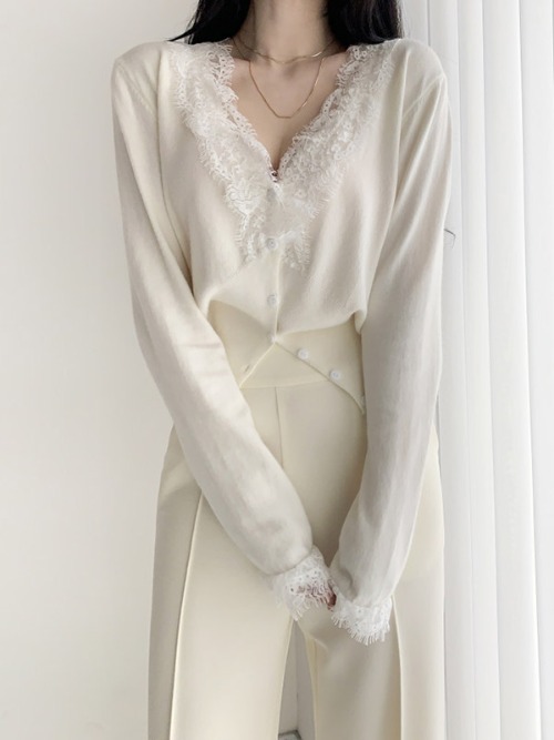 제린 레이스 브이넥 가디건