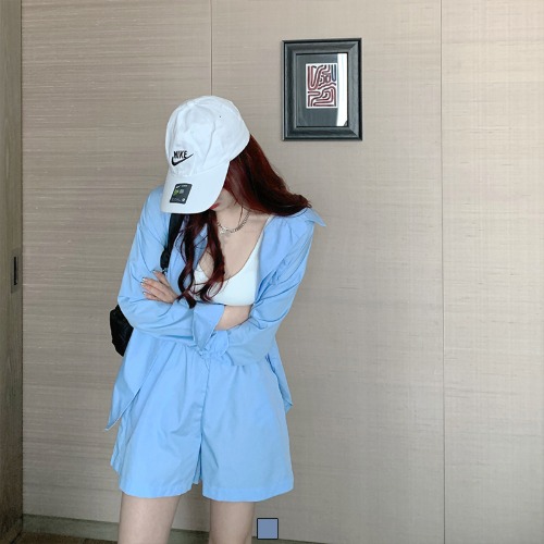 [퀸페이지] 꾸안꾸 봄 여름 셔츠 밴딩 반바지 트레이닝 세트 투피스
