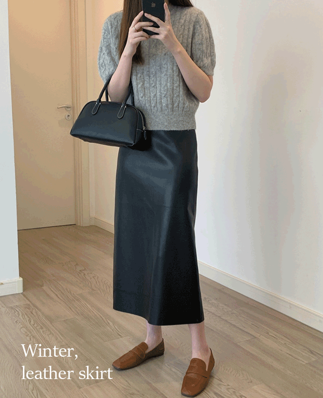 데일리 H라인 뒷트임 슬림핏 레더 롱 스커트 - 3color