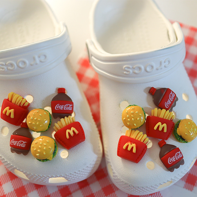 12pcs 햄버거 콜라 감자튀김 패스트푸드 실내화 신발 꾸미기 세트 모음 장식 악세서리