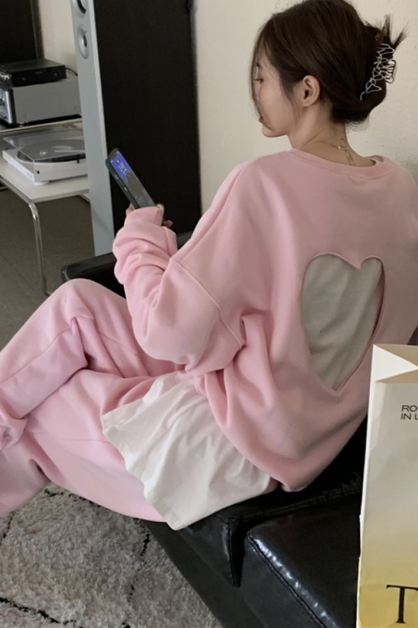 set 레이어드 긴팔 티셔츠+하트 펀칭 라운드넥 티셔츠+조거 팬츠 3p세트