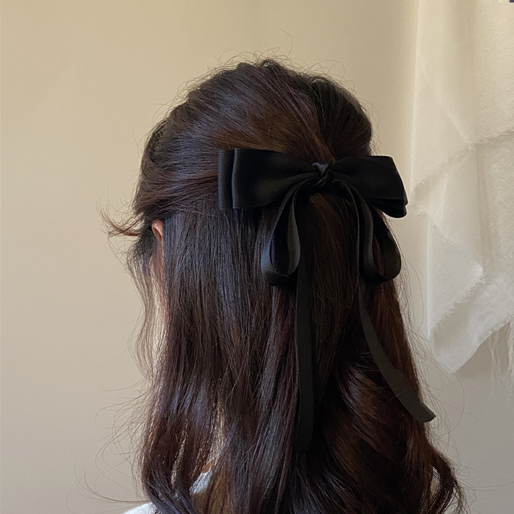고급 블랙 공단 롱테일 리본핀 테잎리본핀 리본헤어핀