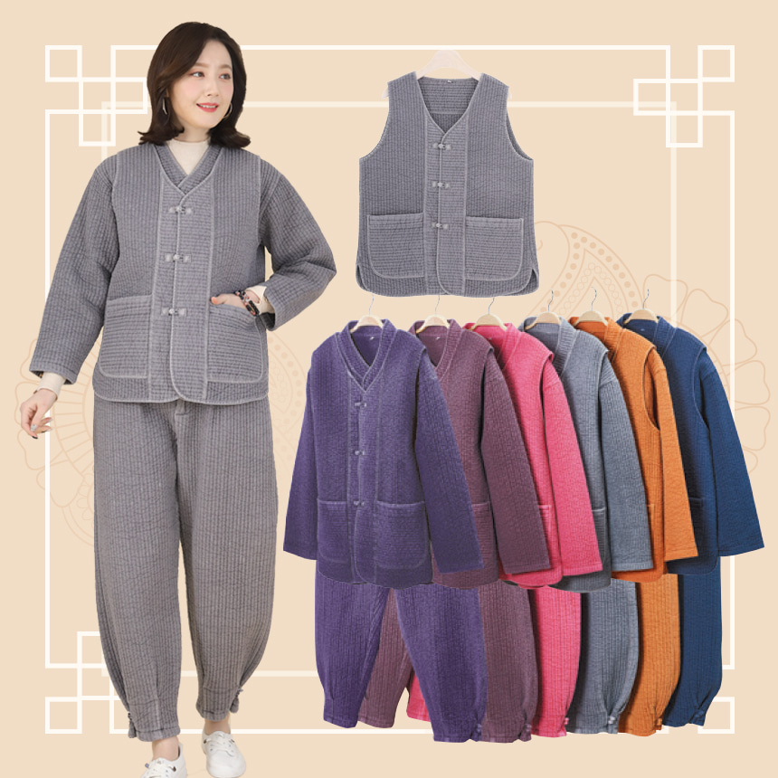 솜 누빔 겨울 생활한복 상하조끼 3종 세트 남여공용 어른 여성 절복 H01144