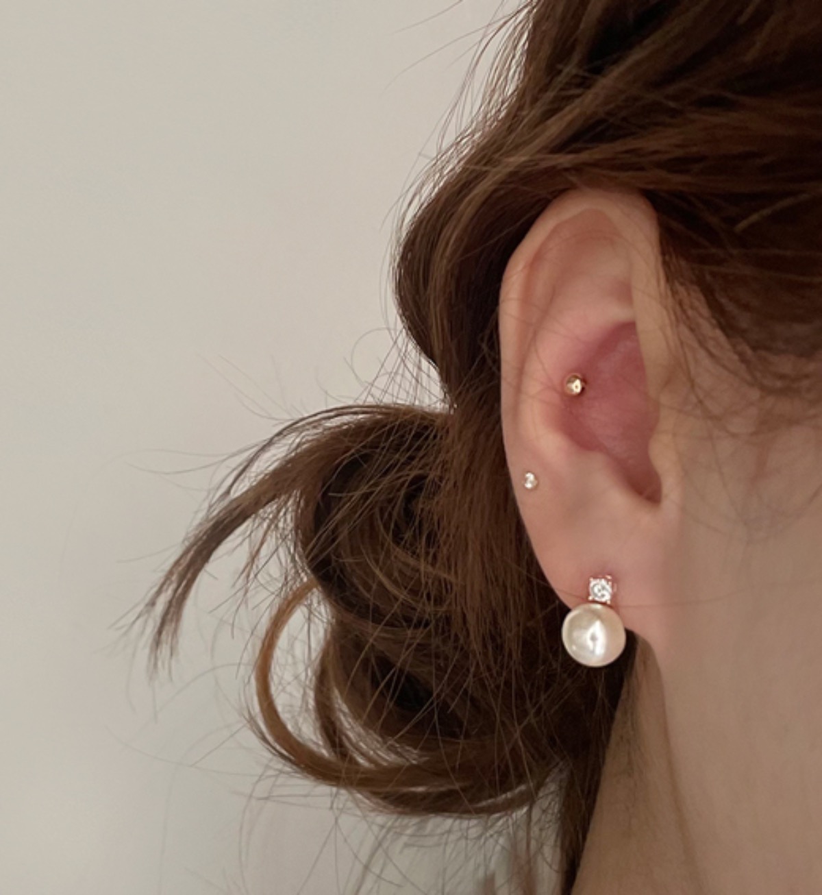 [무배/실버침] 블랑 큐빅 진주 드롭 귀걸이 / 2color