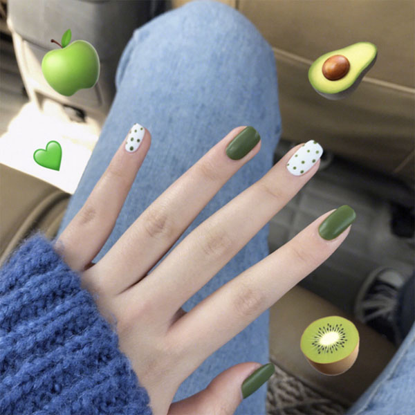 네일팁 인조네일 과일 키위 네일 그린 아트 도트 패턴 인조 네일 가짜손톱 BU-NAIL-N37