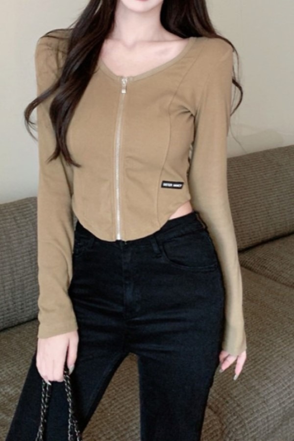비엘라 집업 라운드넥 긴소매 롱슬리브 크롭 니트 가디건
